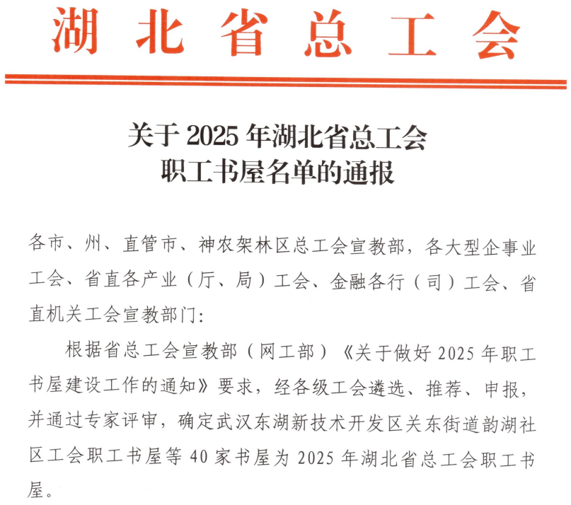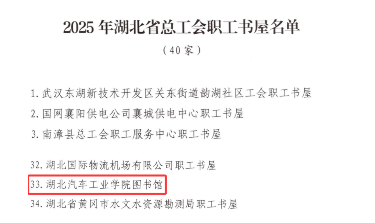 (文/图 陈晓英)骐骥驰骋迎新岁,书香阅读励初心。新春伊始,从湖北省总工会传来喜讯,我校图书馆喜获湖北省总工会职工书屋荣誉称号。这是继2024年获评十堰市职工书屋后,学校图书馆和校工会在文化阵地建设上取得的又一重要成果。